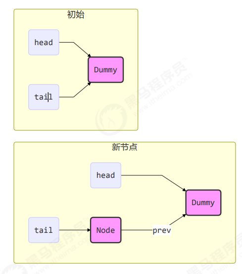 - dummy 节点的引入让两把【锁】将来锁住的是不同对象,避免竞争