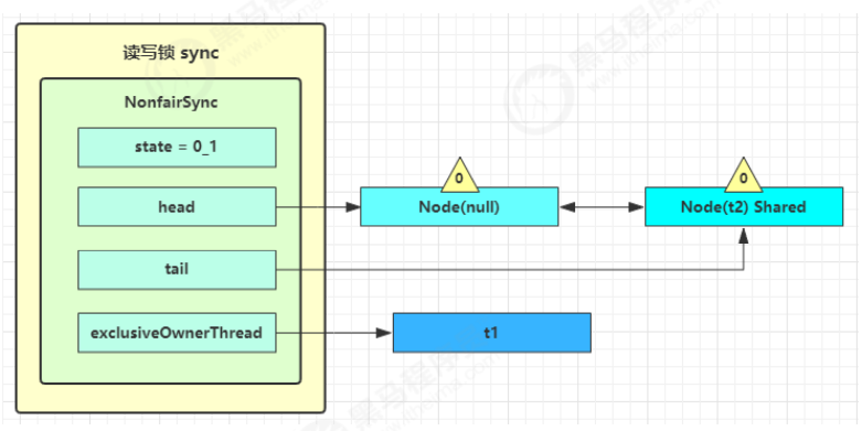 - 两把【锁】,同一时刻,可以允许两个线程同时(一个生产者与一个消费者)执行